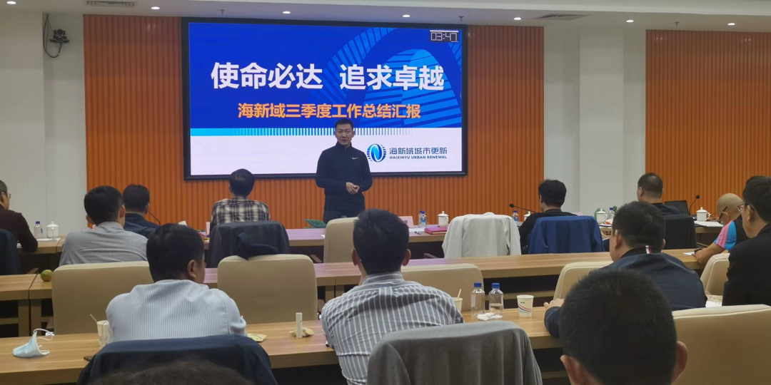 近日,海新域城市更新集團總經(jīng)理張攀攜全體員工在旗下海星醫(yī)藥創(chuàng)新園C區(qū)(原中關(guān)村醫(yī)學轉(zhuǎn)化中心)召開第三季度工作總結(jié)會。海國投集團經(jīng)營管理部經(jīng)理祝賀參加會議。