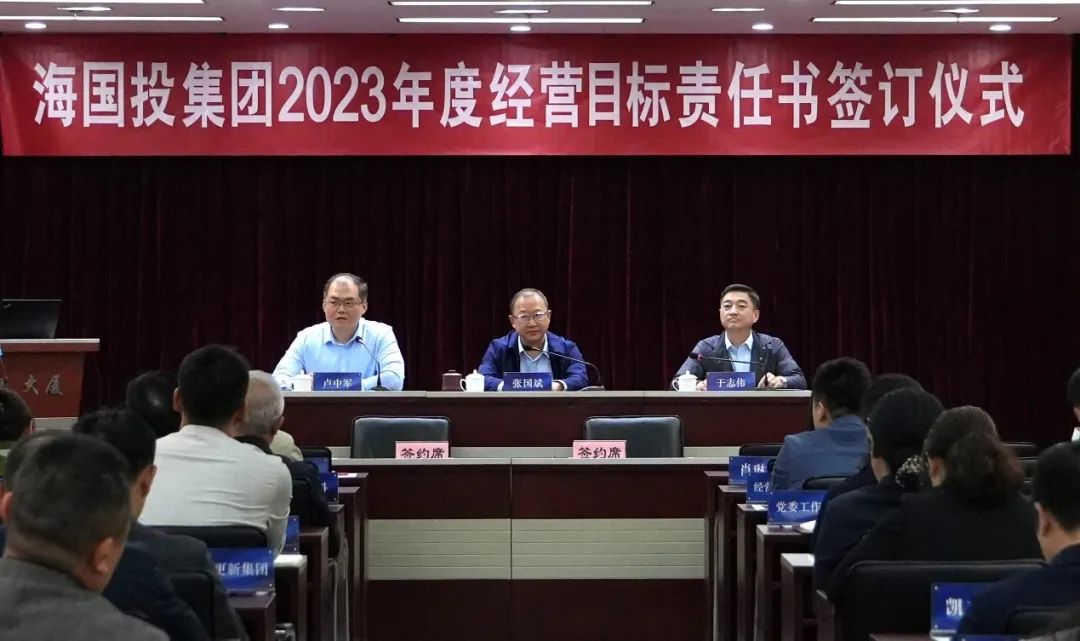 為全面貫徹落實區(qū)委區(qū)政府及區(qū)國資委指示精神,提高集團精細化管理水平及核心競爭力,確保集團經(jīng)營目標的實現(xiàn),5月6日,海國投集團在鑫泰大廈一樓報告廳組織召開進一步強化集團經(jīng)營管理能力暨簽署2023年度經(jīng)營目標責任書的會議。會議由集團副總經(jīng)理盧中軍主持,集團黨委書記、董事長張國斌,黨委副書記、總經(jīng)理于志偉出席本次會議,集團總部全體領導班子、集團總部各部門負責人、一級監(jiān)管企業(yè)領導班子80余人參加現(xiàn)場會議,部分下屬企業(yè)以視頻會議形式參加。