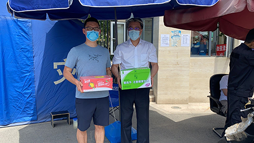 由于發(fā)生新發(fā)地批發(fā)市場聚集性疫情,北京市應(yīng)急相應(yīng)級別提升至二級,防控形勢十分嚴(yán)峻。面對疫情防控工作出現(xiàn)的新變化,海國投全體下沉黨員職工迅速行動起來,重啟下沉值守工作,繼續(xù)擔(dān)起社區(qū)防疫的重任。6月18日下午,公司黨委副書記、工會主席張澤根代表公司黨委,看望慰問值守在一線的黨員職工,為大家?guī)チ孙嬘盟?、口罩等防疫物資。